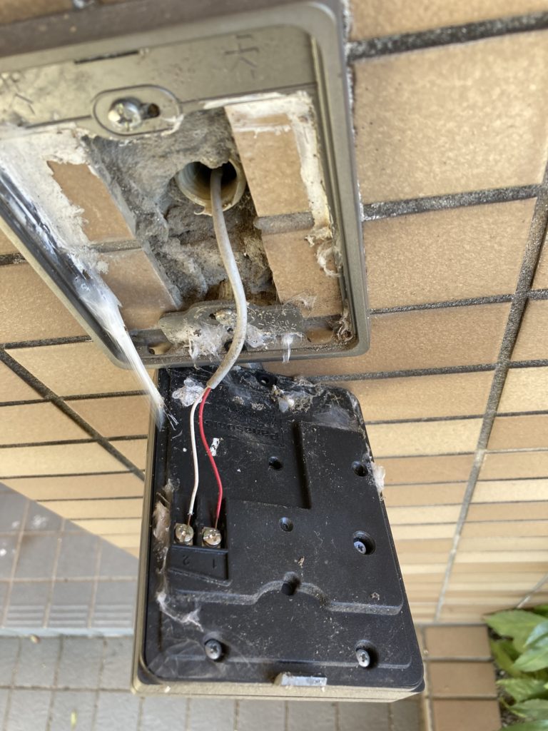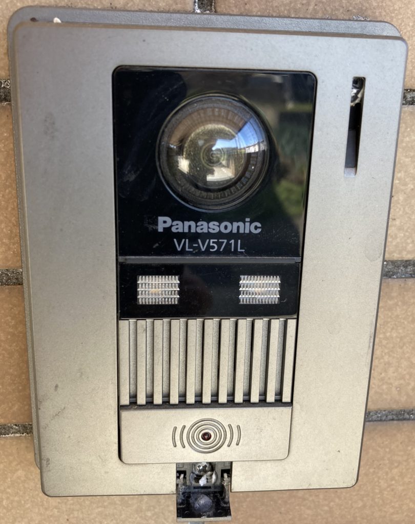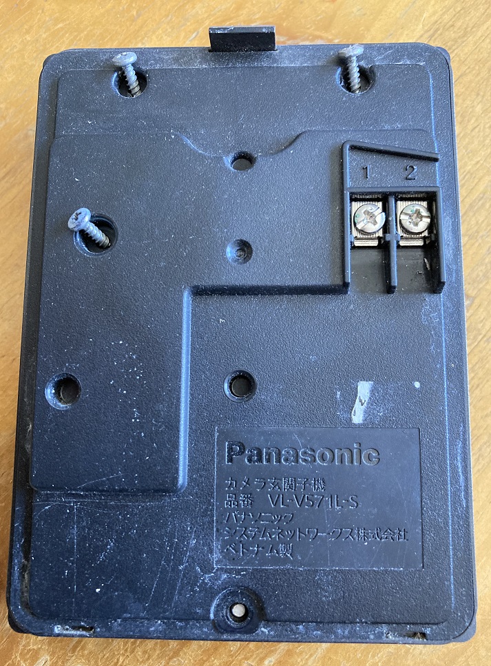 インターホンの押し釦スイッチの下の窓を開けるとねじが出てきます。ねじを緩めると本体は簡単に外すことができます。
