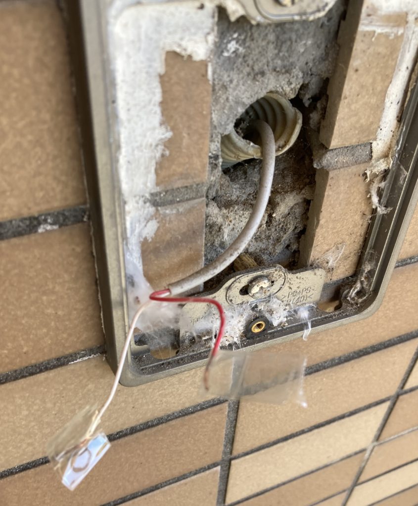 配線は2本ですので、短絡させない様にしておきます。私は、セロテープで絶縁しました。